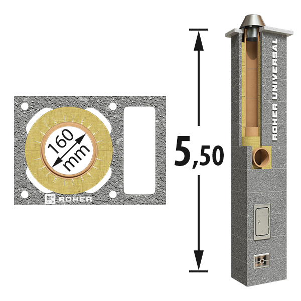 KOMIN SYSTEMOWY ROHER UNIWERSAL FI 160+W 5,50 M