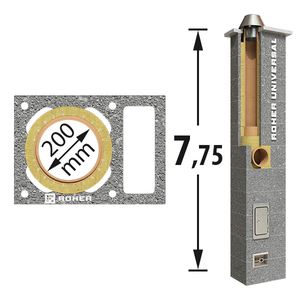 KOMIN SYSTEMOWY ROHER UNIWERSAL FI 200+W 7,75 M